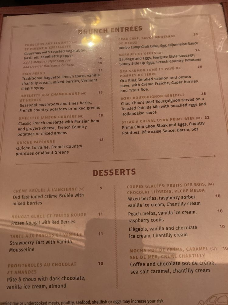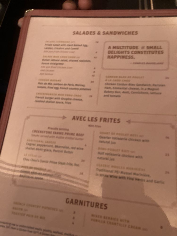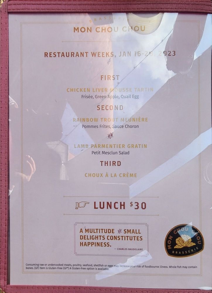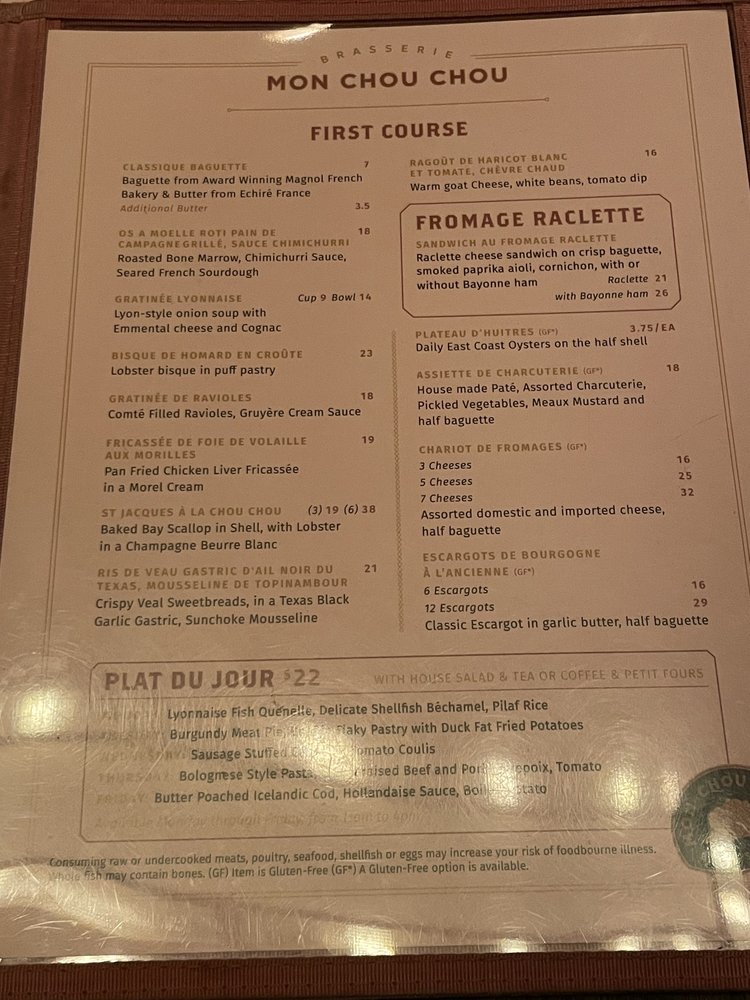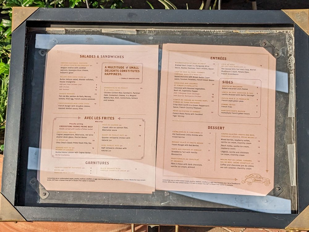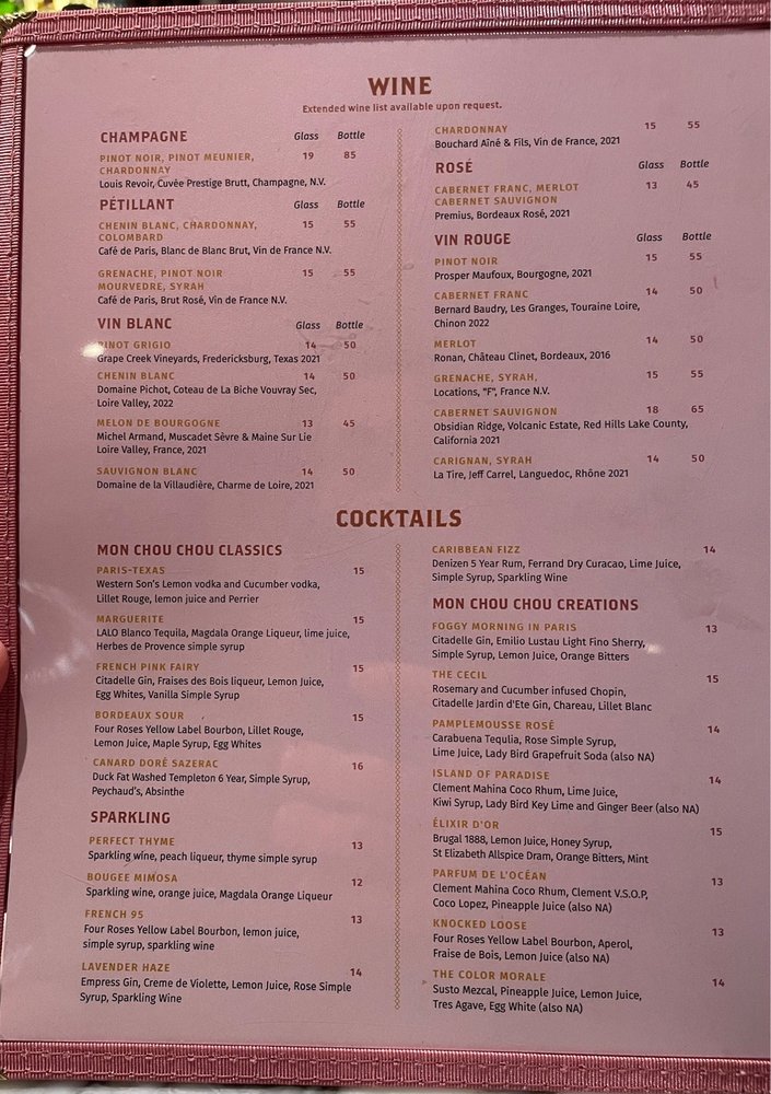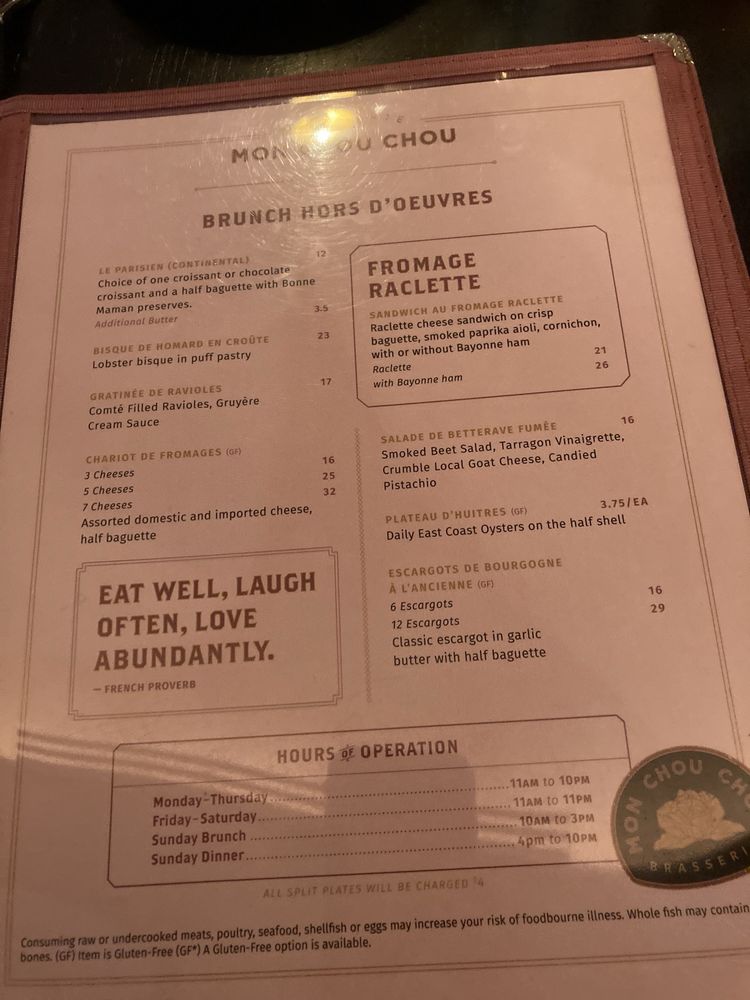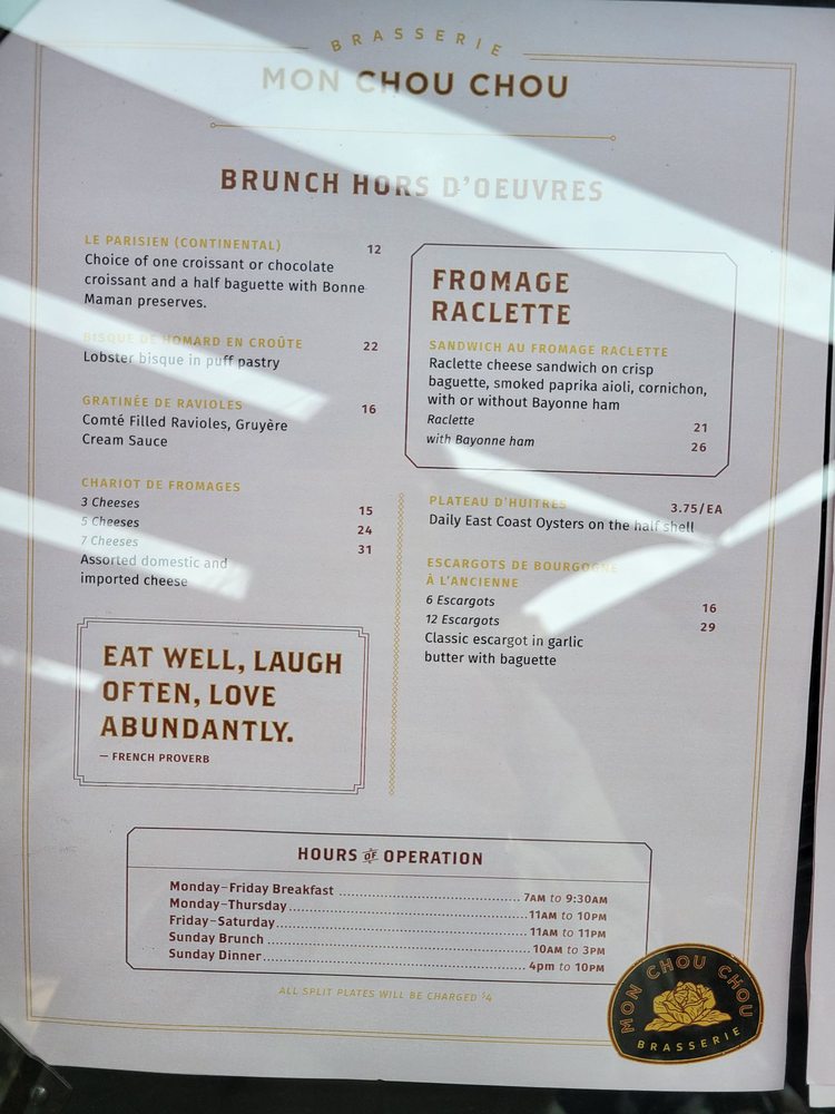 Brasserie Mon Chou Chou Menu (2025 Update)